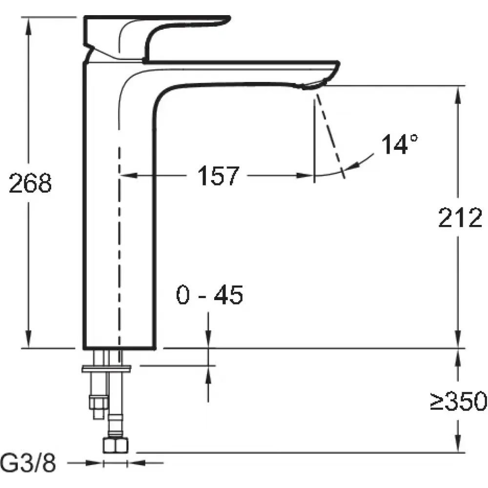 Технические характеристики Высокий смеситель на столешницу Aleo 21,2 см, неповоротный излив, без донного клапана E72299-4-CP Jacob Delafon