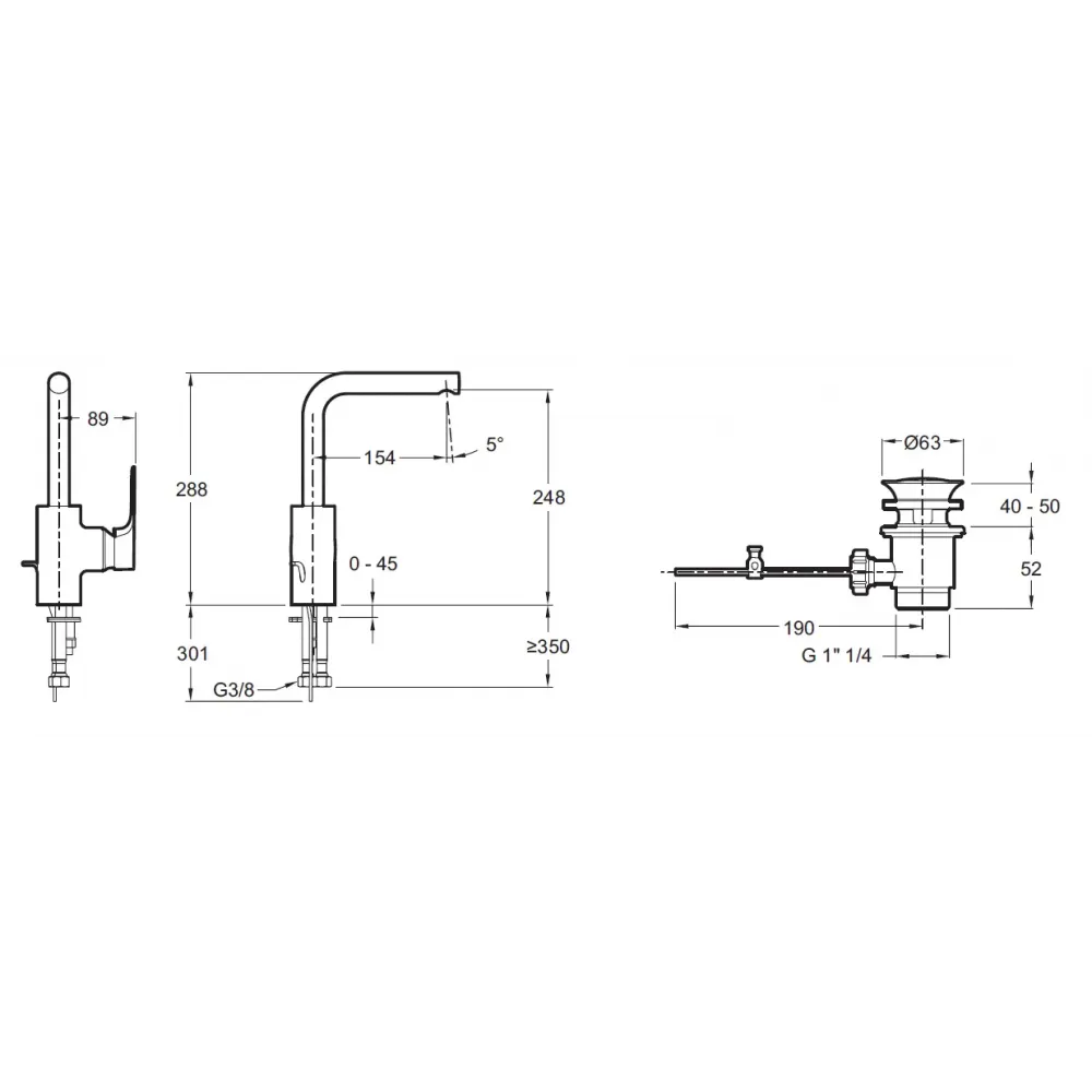 Технические характеристики Высокий смеситель на столешницу Aleo 24,8 см, узкий рычаг, поворотный излив, с донным клапаном E72357-CP Jacob Delafon