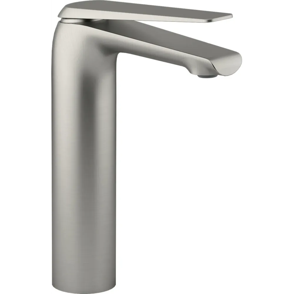 Высокий однорычажный смеситель для умывальника с гибкой подводкой.