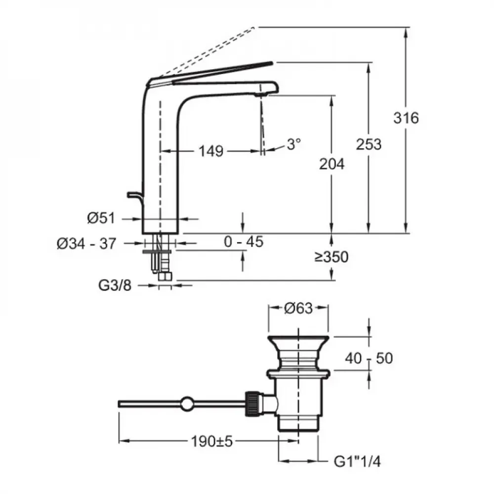 Высота под изливом 207 мм.