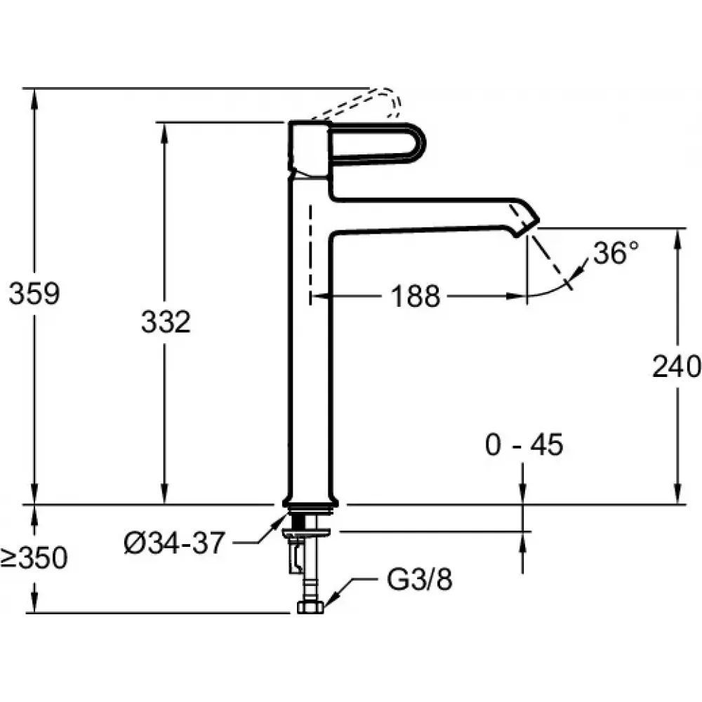 Технические характеристики Высокий смеситель на столешницу Odeon Rive Gauche 33,2 см, белая ручка, чёрный цвет, неповоротный излив, без донного клапана E21031-00-BL Jacob Delafon