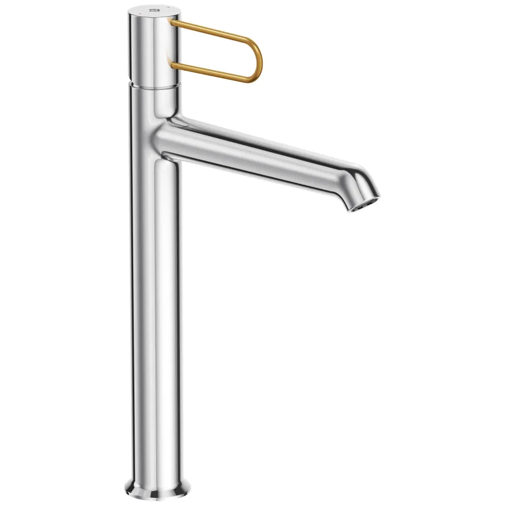 Высокий смеситель на столешницу Odeon Rive Gauche 33,2 см, ручка золото, неповоротный излив, с донным клапаном E21030-GLD-CP Jacob Delafon