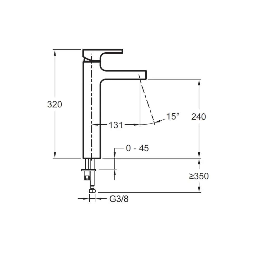 Технические характеристики Высокий смеситель на столешницу Strayt 24 см, неповоротный излив, без донного клапана E98340-CP Jacob Delafon