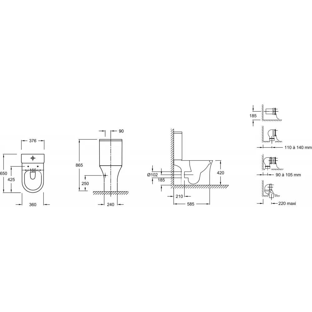 Технические характеристики Бачок унитаза Aleo нижняя подводка ETAL212-0 Jacob Delafon
