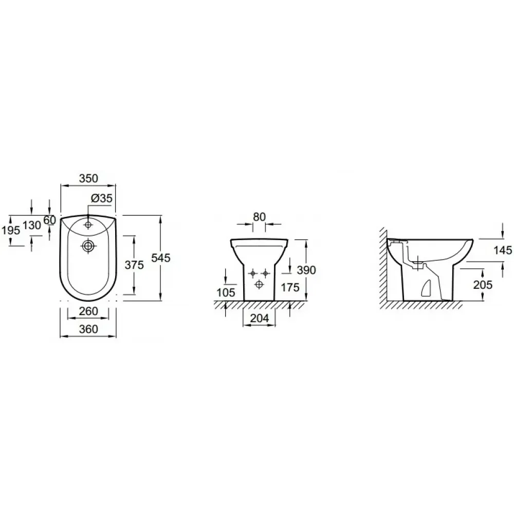 Технические характеристики Биде Odeon 36х54,5 см, напольное, без крышки E1093-00 Jacob Delafon