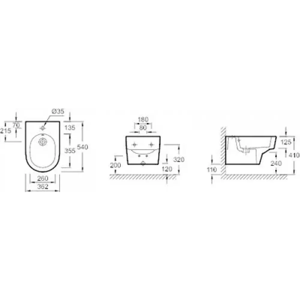 Технические характеристики Биде Odeon Rive Gauche 36,2х54 см, подвесное, без крышки EMG0002-00 Jacob Delafon