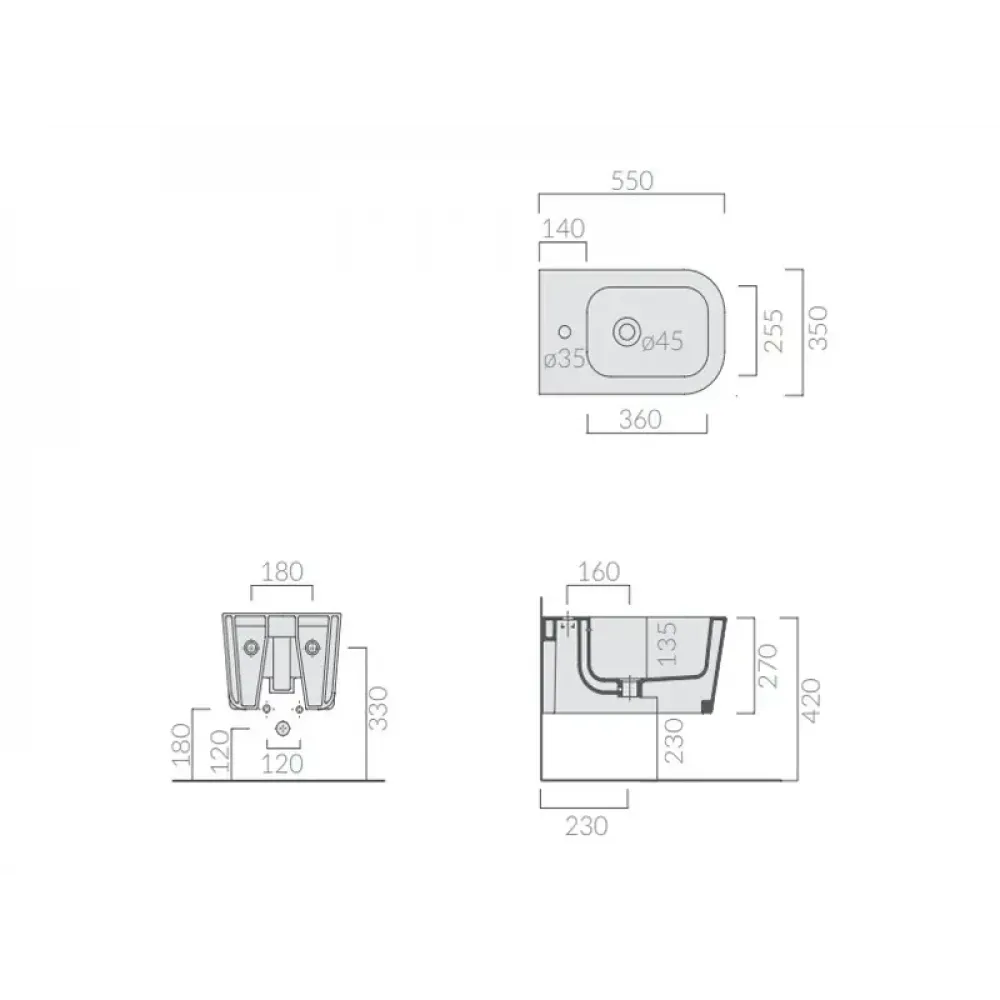 Meg11/5412 биде подвесное 55*35*h27см, с 1 отверстием, крепеж в комплекте, белый