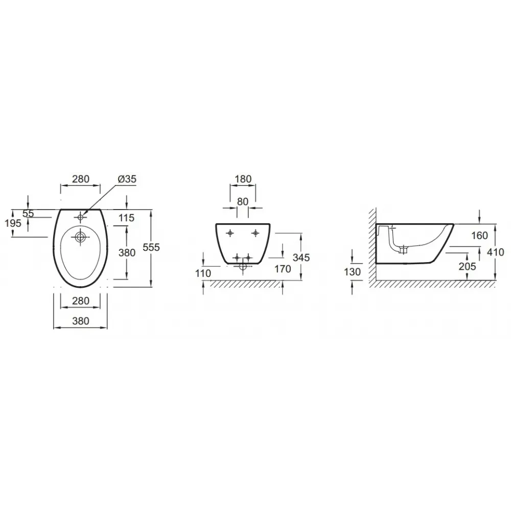 | Установка биде | подвесная |