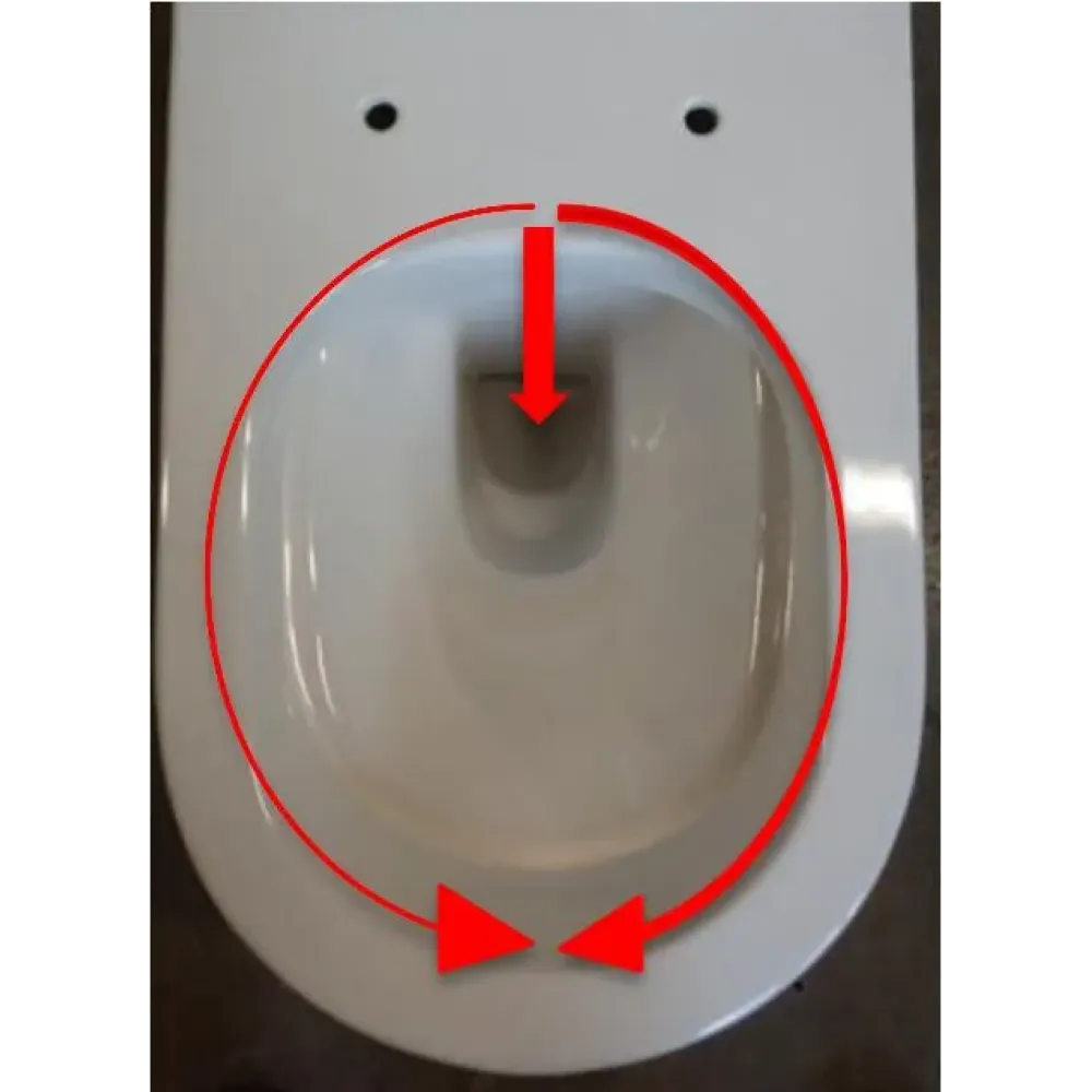 Эффективный смыв: Эффективное направление воды к передней части чаши для оптимального распределения по сторонам, избегая брызг