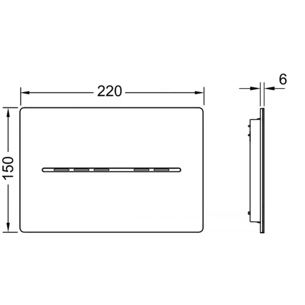 Плоская панель из нержавеющей стали в комплекте с крепежными элементами и электроприводом смыва для систем двойного смыва. Совместима с контейнером для гигиенических таблеток.