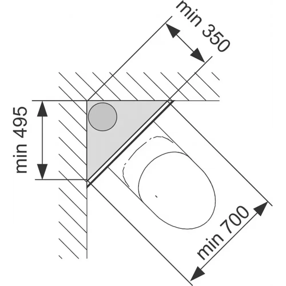 Компактный угловой монтаж, включая монтаж сливных, вентиляционных
