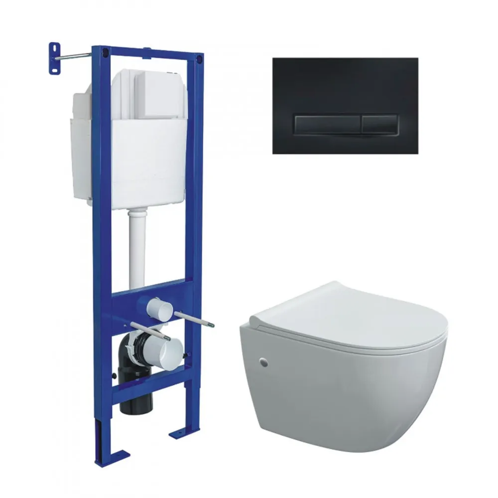 Полный Комплект ATOM Line для монтажа подвесного унитаза: инсталляция, cтальная рама с антикоррозийным покрытием, кнопка черная Soft Touch, унитаз OKUS, сидение дюропласт Okus Slim SO.