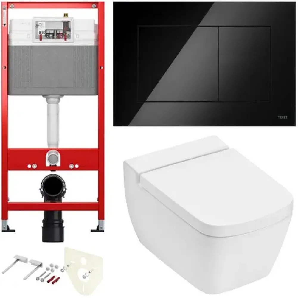 TECE K440403.WC2 TECEone Полный комплект 5 в 1 для установки подвесного унитаз с крышкой/сиденьема, панель черная глянцевая, унитаз с крышкой/сиденьем TECEone