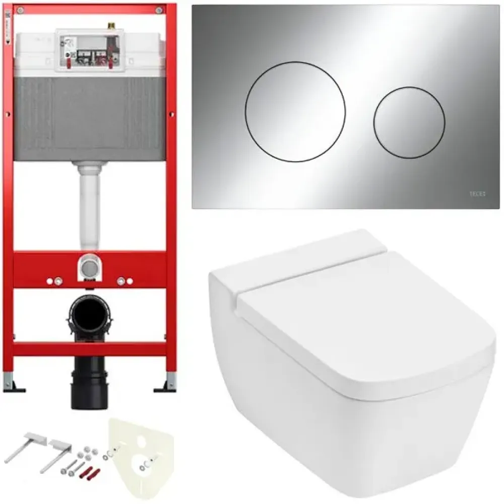 TECE K440921.WC2 TECEone Полный комплект 5 в 1 для установки подвесного унитаз с крышкой/сиденьема, панельхром глянцевый, унитаз с крышкой/сиденьем TECEone