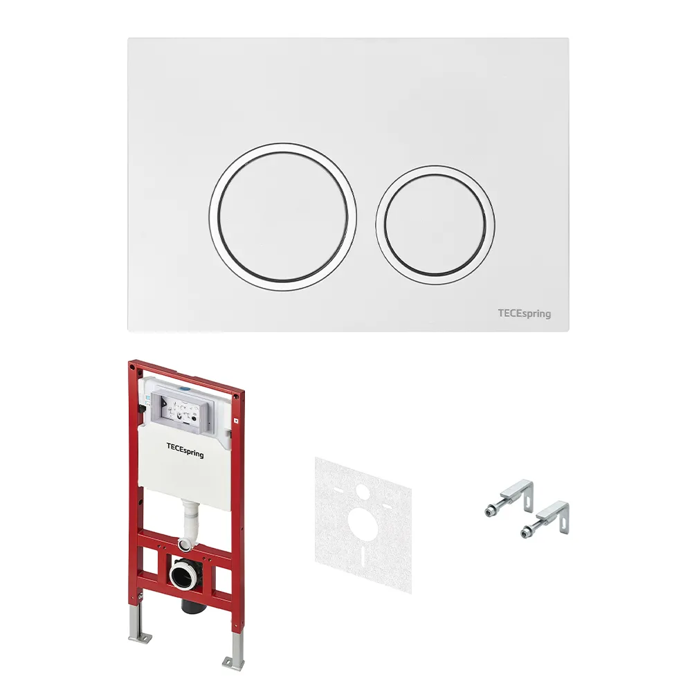 TECE S955103 Комплект для установки подвесного унитаза: застенный модуль TECEspring, пластиковая панель смыва TECEspring R, белая глянцевая