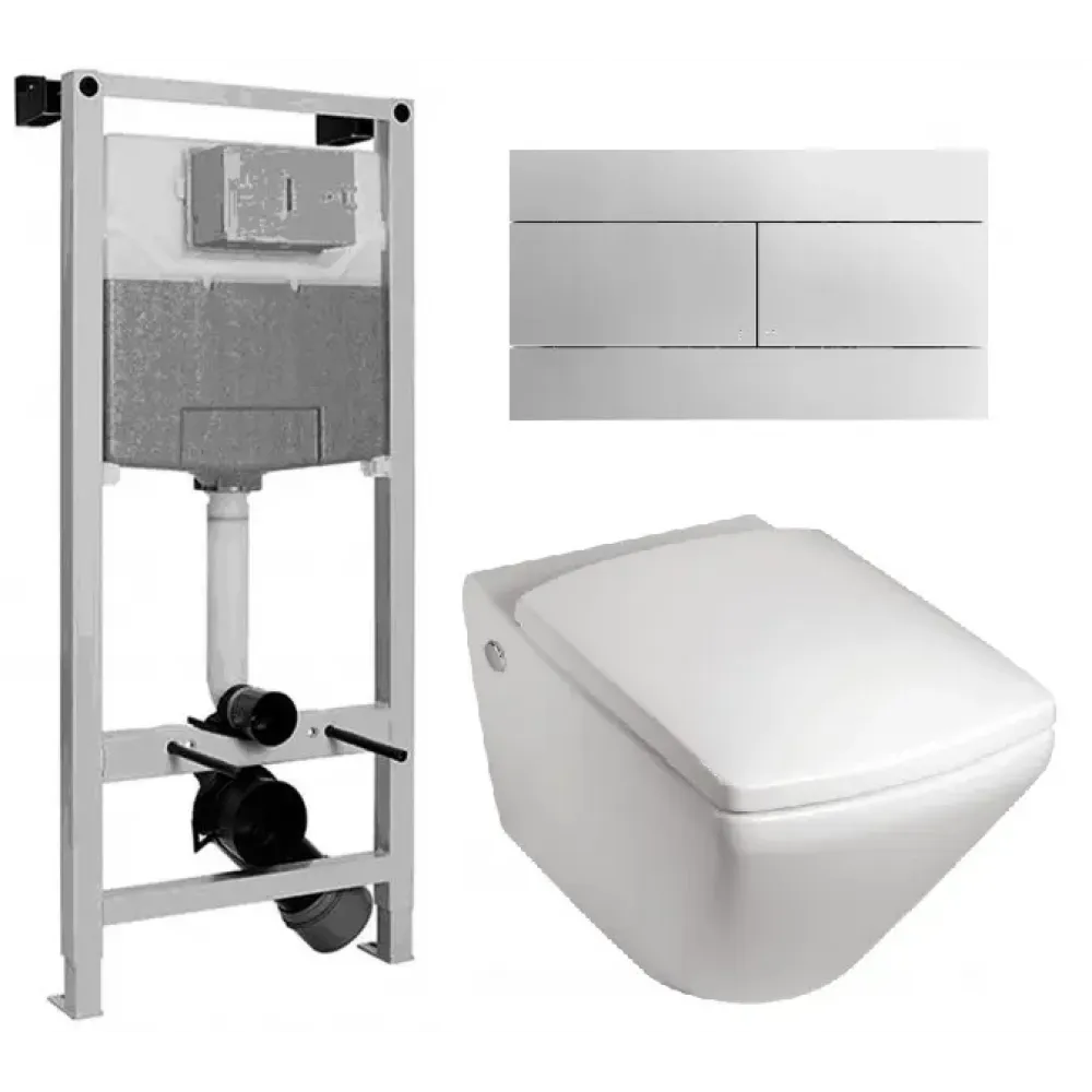 Комплект унитаза с инсталляцией Escale клавиша белая, прямоугольные кнопки, с микролифтом E5504-NF-M27 Jacob Delafon