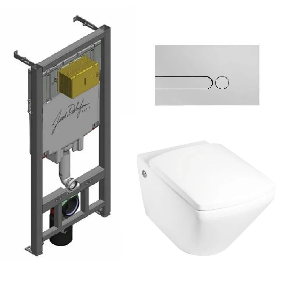 Комплект унитаза с инсталляцией Escale с клавишей хром, с микролифтом, с кнопкой E29025-NF-M2 Jacob Delafon