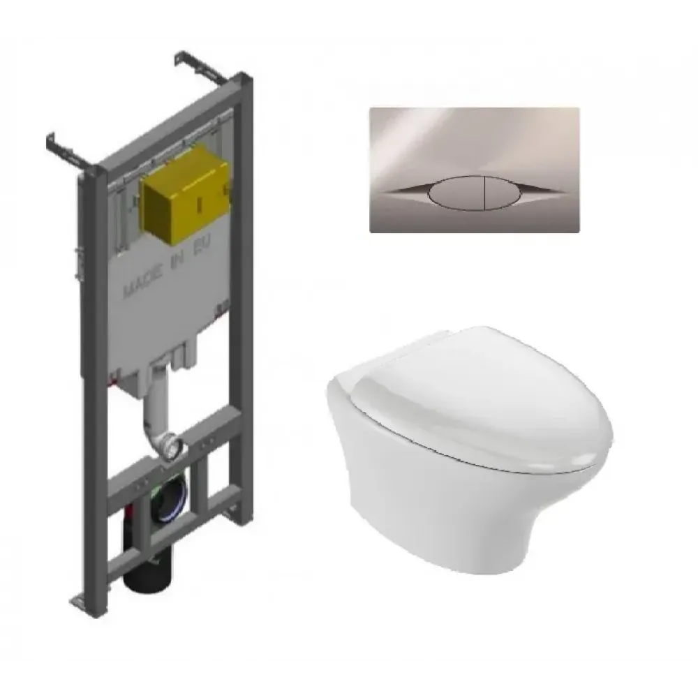 Комплект унитаза с инсталляцией Nouvelle Vague с глянцевой клавишей хром, с микролифтом, безободковый, быстросъемное, с кнопкой Set NOUVELLE VAGUE 29025 Jacob Delafon