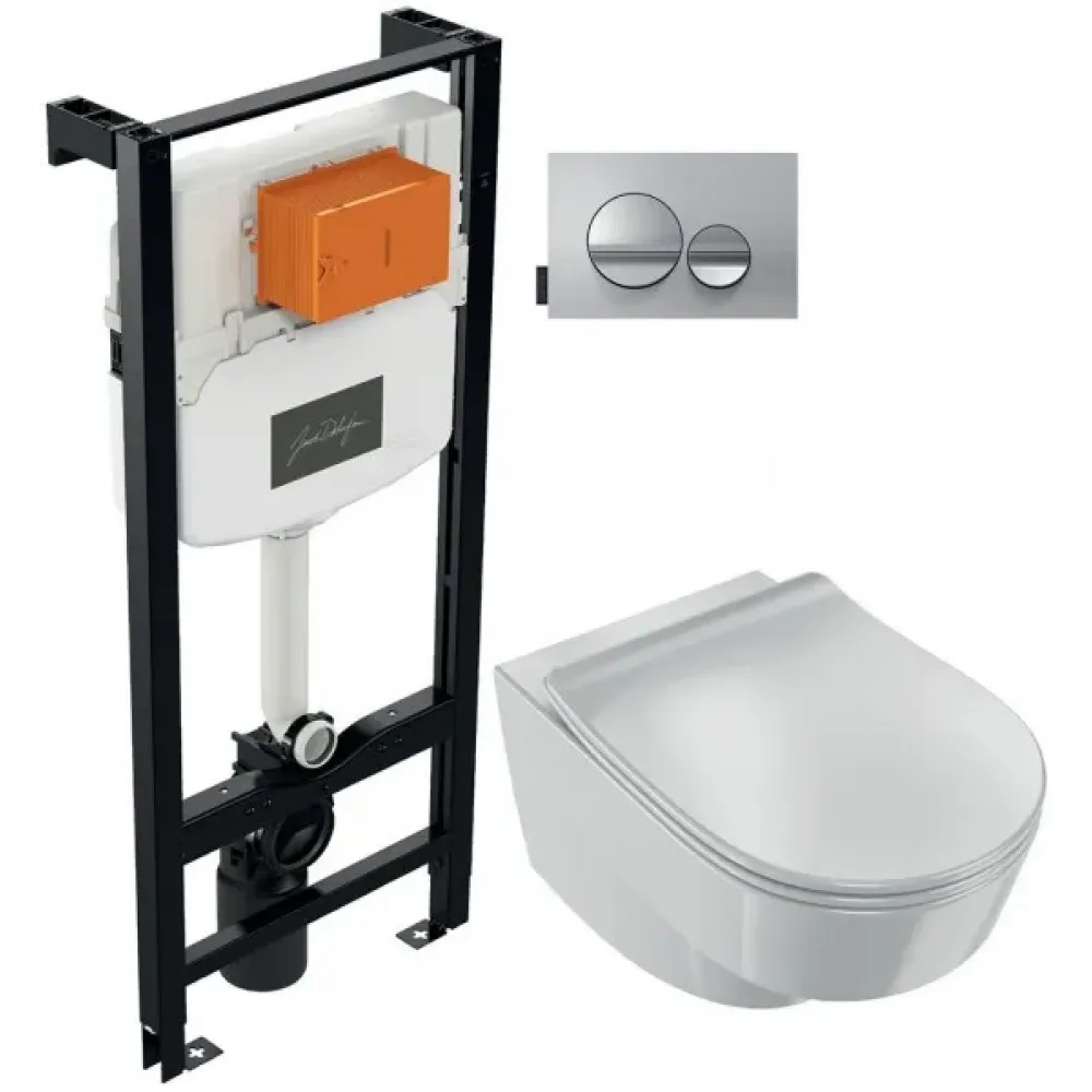 Комплект унитаза с инсталляцией Odeon Rive Gauche глубина унитаза 54см, клавиша хром глянец, с микролифтом, безободковый, быстросъемное E21745RU-00 Jacob Delafon
