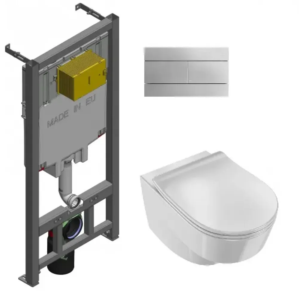 Комплект унитаза с инсталляцией Odeon Rive Gauche клавиша хром, с микролифтом, безободковый, быстросъемное, с кнопкой E29025-NF-43 Jacob Delafon