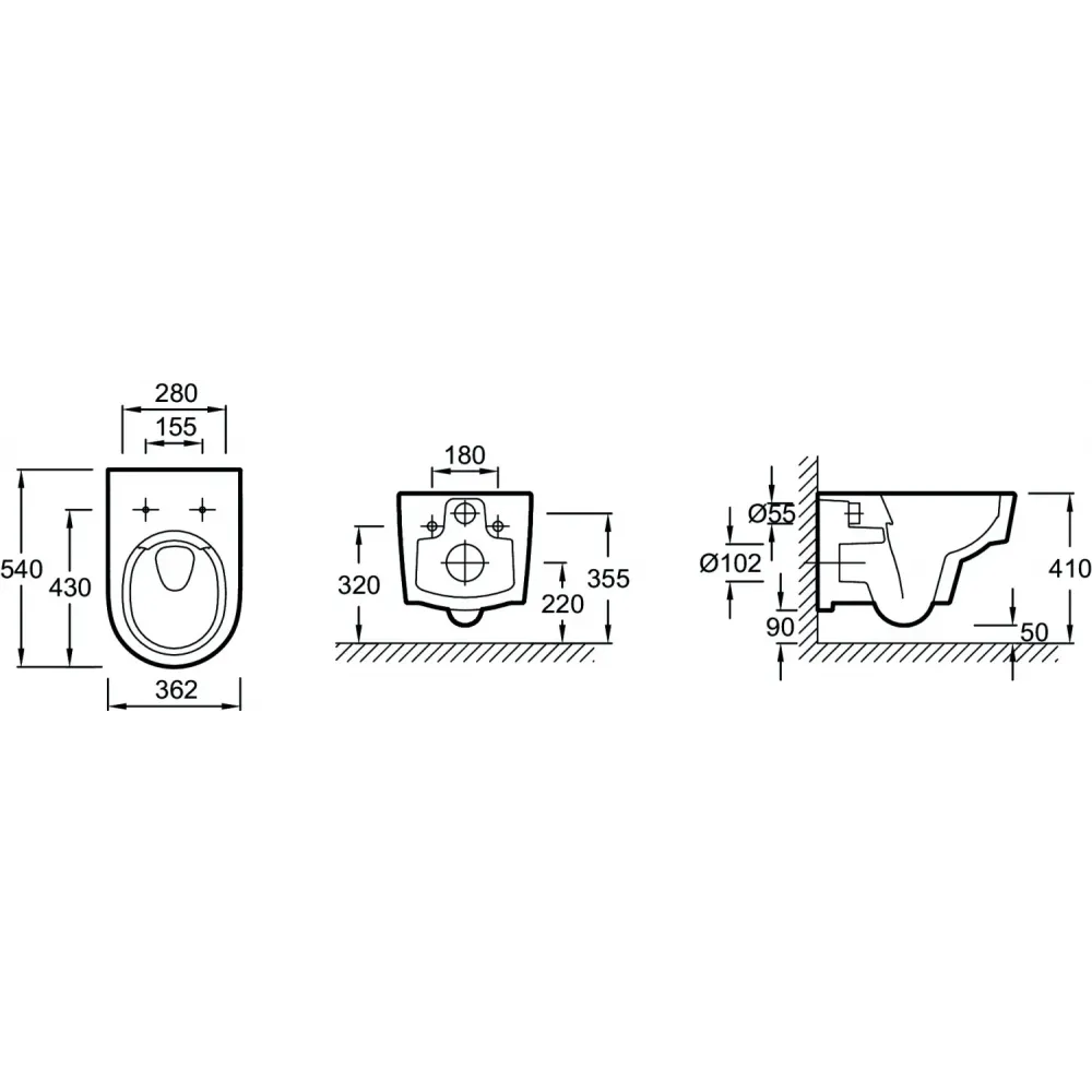 Комплектация: Комплект настенных крепежей, 2 шпильки с контргайкой М12 для крепления подвесного унитаза, 4 крепежа к полу, запорный клапан 1/4 оборота, соединительная труба 280 мм, Ø90 мм с уплотнением, шайбами, гайками и коленным соединением для унитаза, ПВХ, Ø100мм