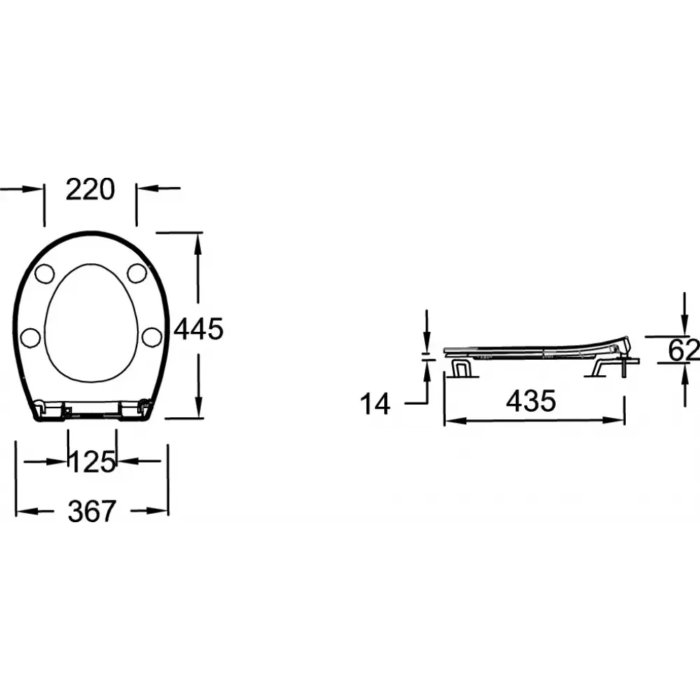 Крышка-сиденье из термодюра с механизмом "плавное опускание". Съемные металлические крепления.