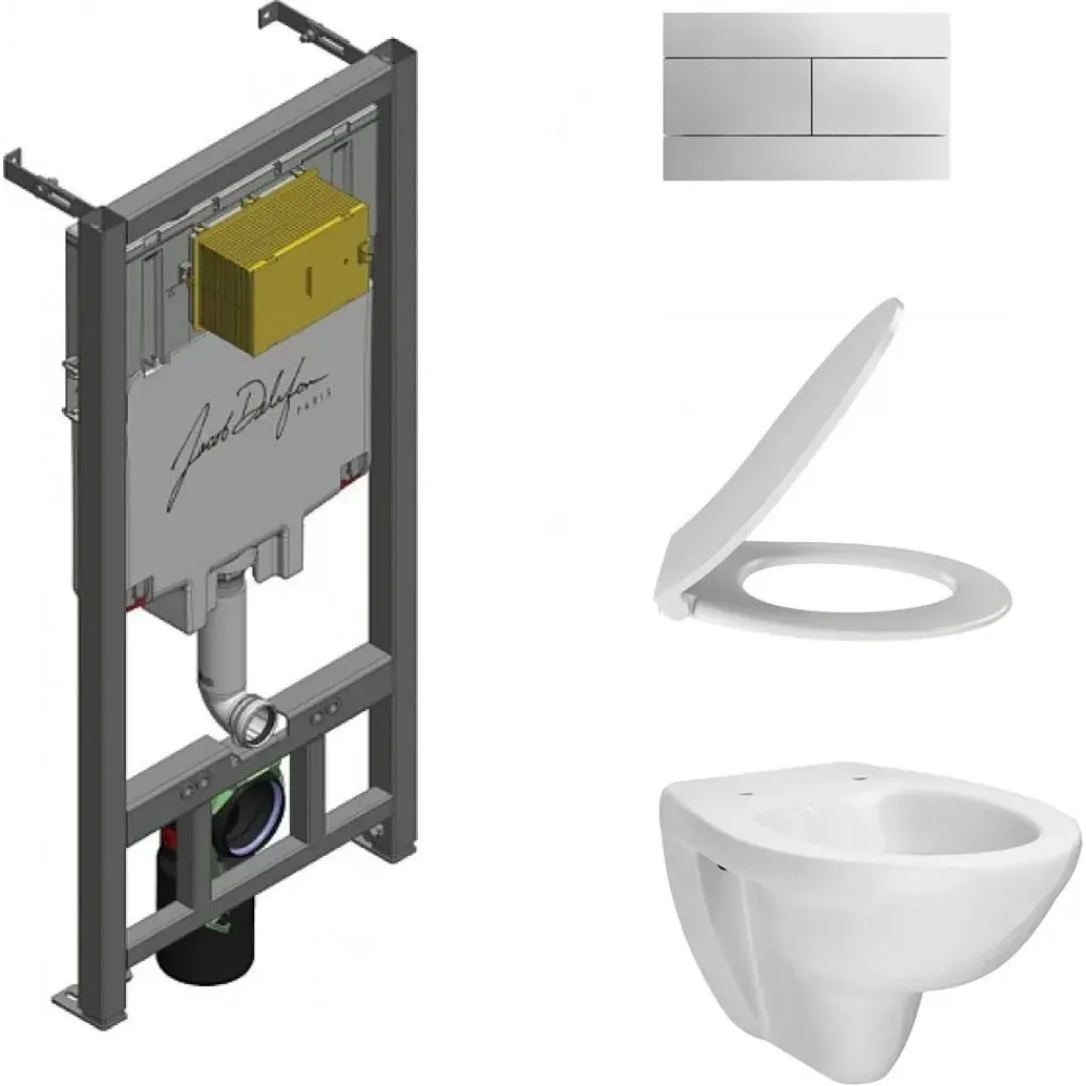 Комплект унитаза с инсталляцией Patio глубина унитаза 54см, клавиша хром глянец, с микролифтом, безободковый, быстросъемное E21740RU-00 Jacob Delafon