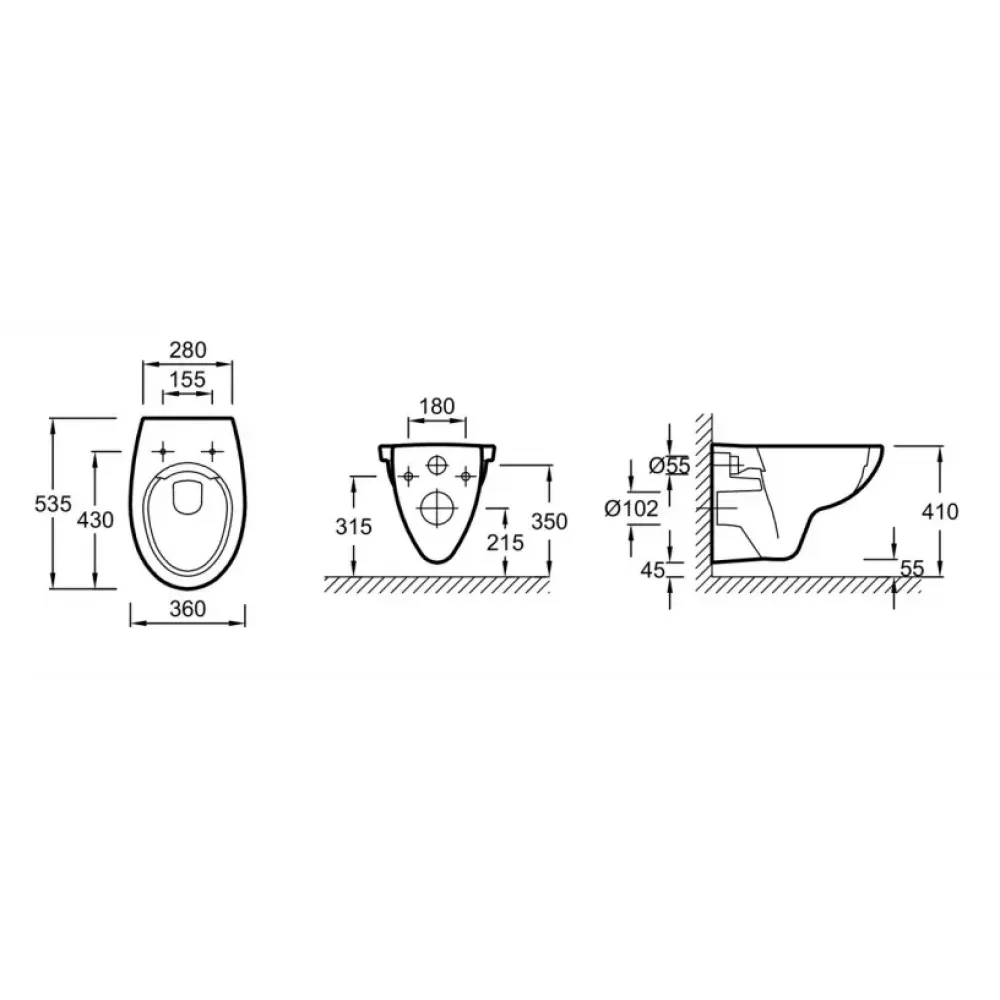 Размеры унитаза: 53,5х36 см