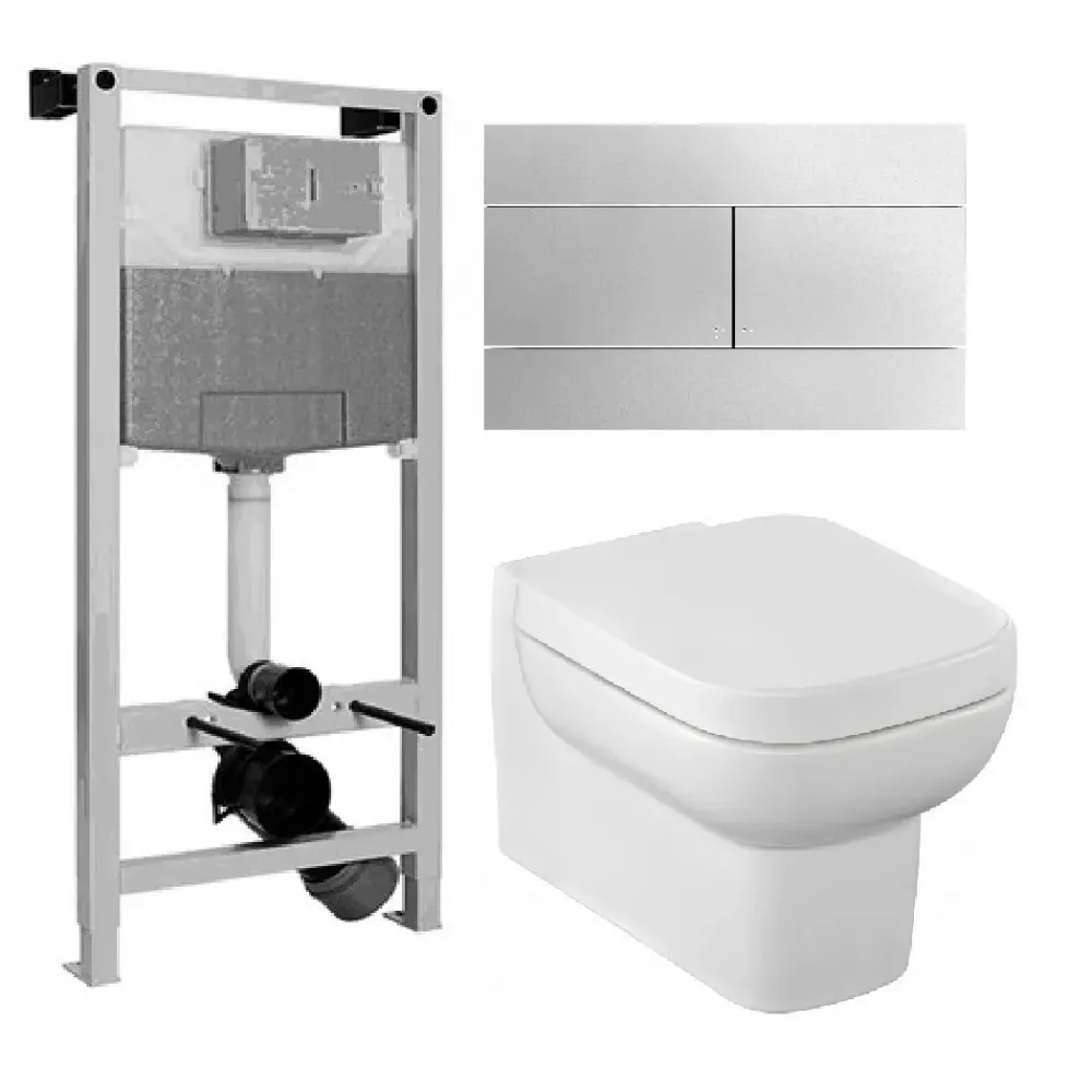 Комплект унитаза с инсталляцией Replay с матовой клавишей хром, с микролифтом, с кнопкой E5504-NF-M7 Jacob Delafon