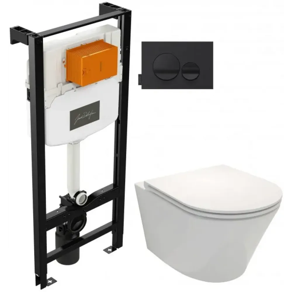 Комплект унитаза с инсталляцией Rodin глубина унитаза 52см, черная, с микролифтом, безободковый E21748RU-00 Jacob Delafon