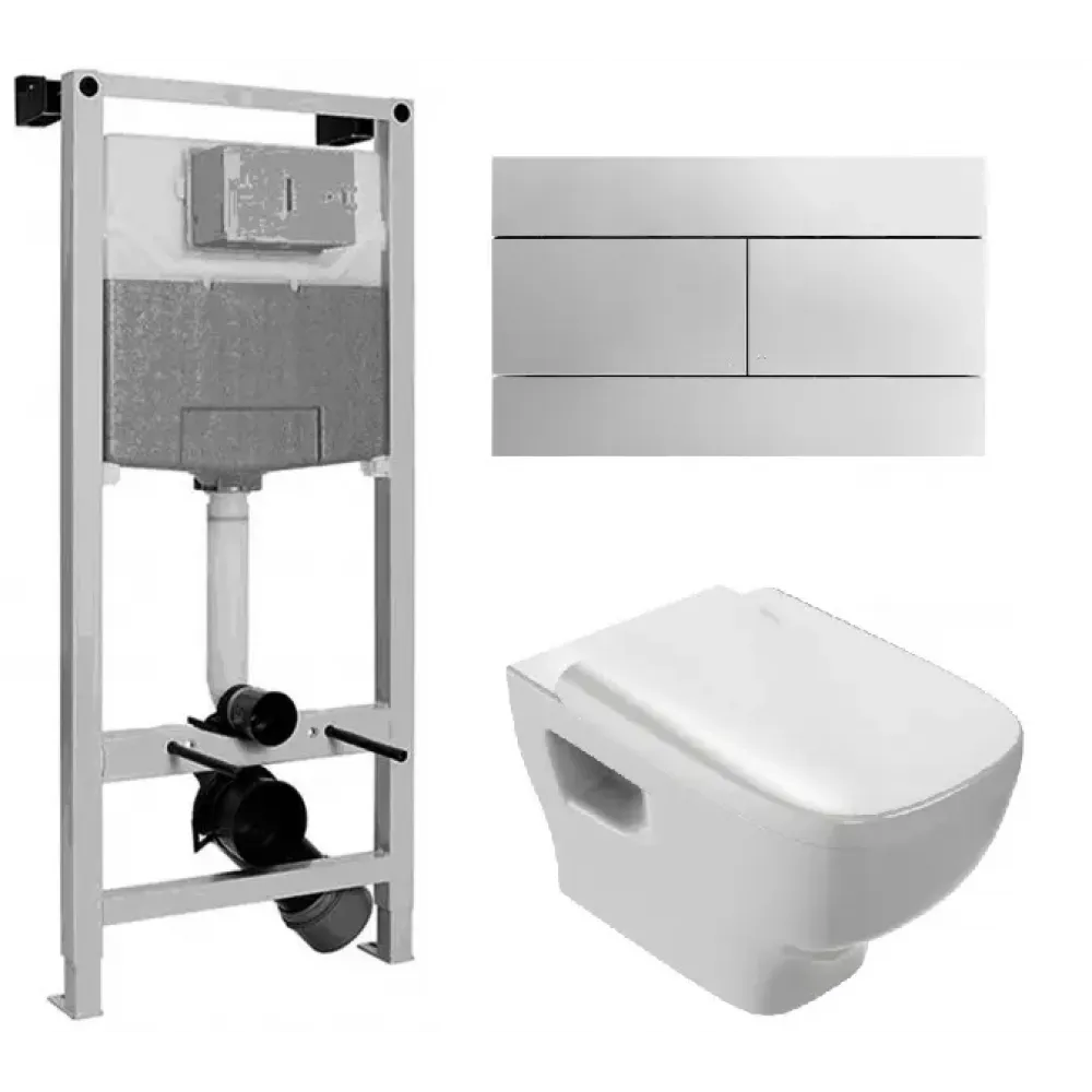 Комплект унитаза с инсталляцией Struktura белая, с микролифтом, безободковый, быстросъемное, с кнопкой E5504-NF-M31 Jacob Delafon