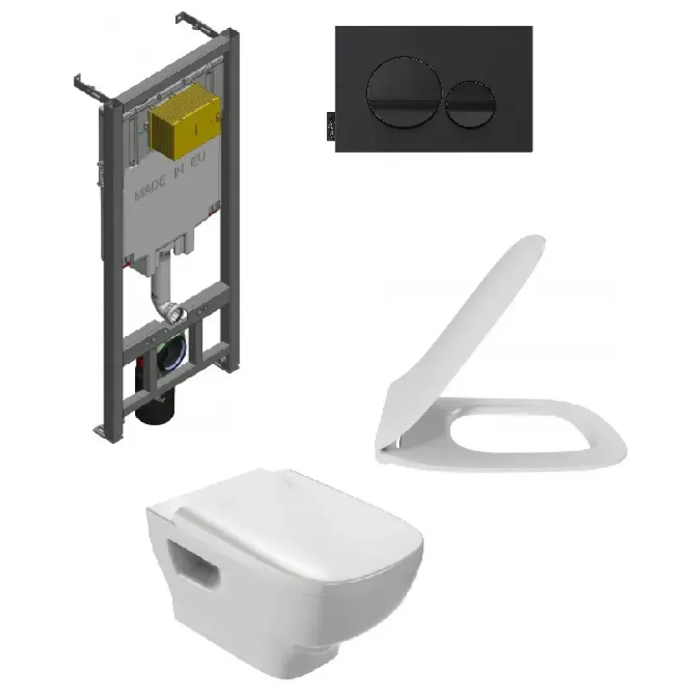 Технические характеристики Комплект унитаза с инсталляцией Struktura глубина унитаза 54см, черная, с микролифтом, безободковый E21750RU-00 Jacob Delafon