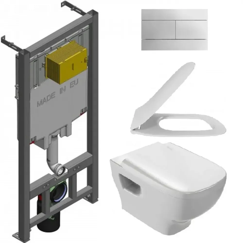 Технические характеристики Комплект унитаза с инсталляцией Struktura глубина унитаза 54см, клавиша хром глянец, с микролифтом, безободковый, быстросъемное E21741RU-00 Jacob Delafon