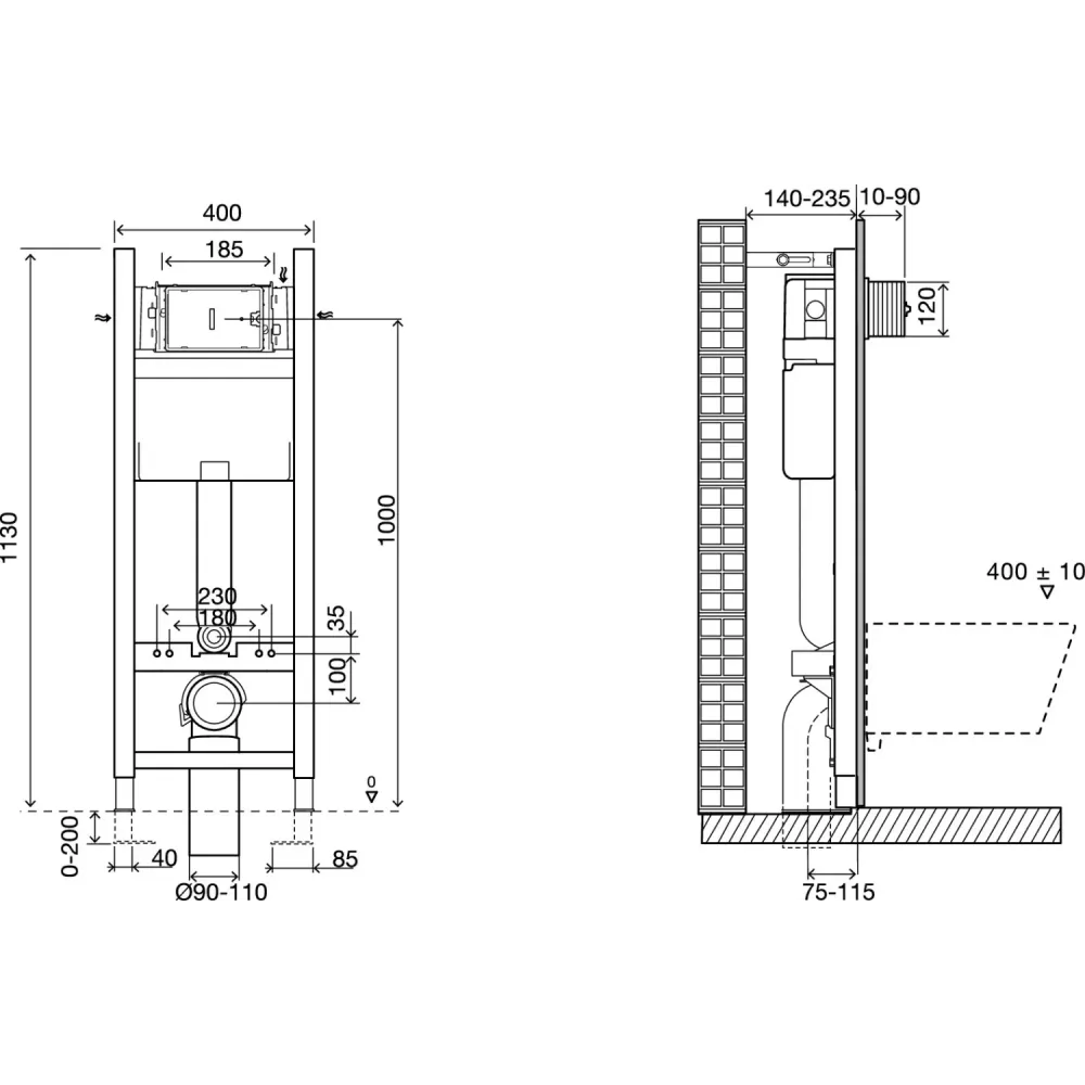 Комплектация: Комплект настенных крепежей, 2 шпильки с контргайкой M12 для крепления подвесного унитаза, 4 крепежа к полу, запорный клапан ¼ оборота 3/8, соединительная труба 280 мм, Ø 90 мм с уплотнением, шайбами, гайками и белыми, Коленное соединение для унитаза, ПВХ, Ø 100