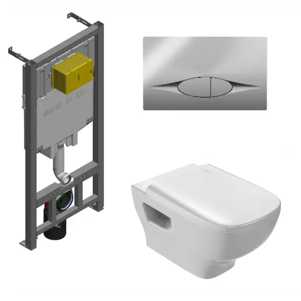 Struktura 34х54см, комплект унитаза с инсталляцией, с микролифтом, безободковый, быстросъемное, клавиша белая, арт. E29025-NF-50, Jacob Delafon