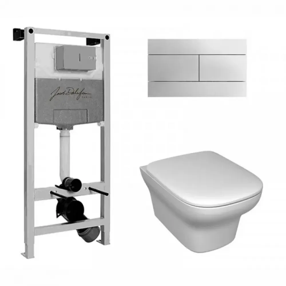 Технические характеристики Комплект унитаза с инсталляцией Vox глубина унитаза 50см, клавиша хром глянец, с микролифтом, безободковый, быстросъемное E21744RU-00 Jacob Delafon