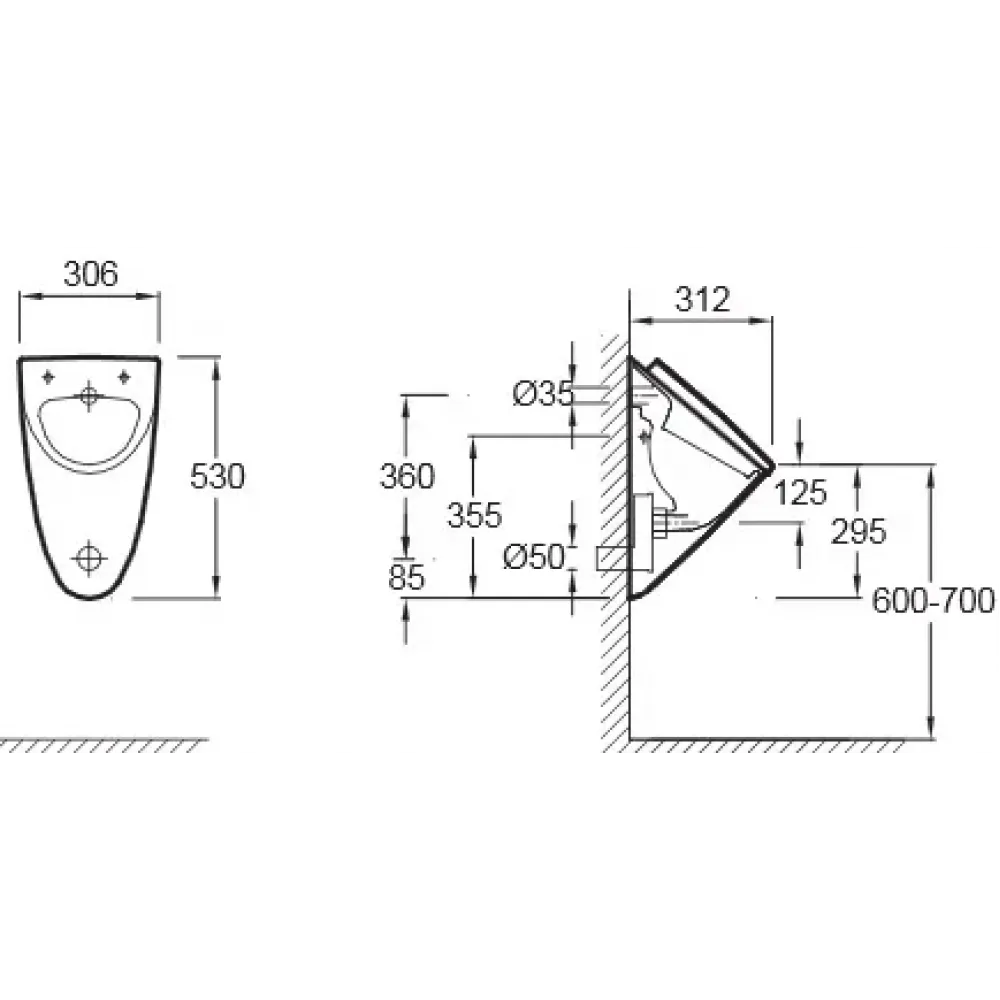 | Установка писсуара | настенные |