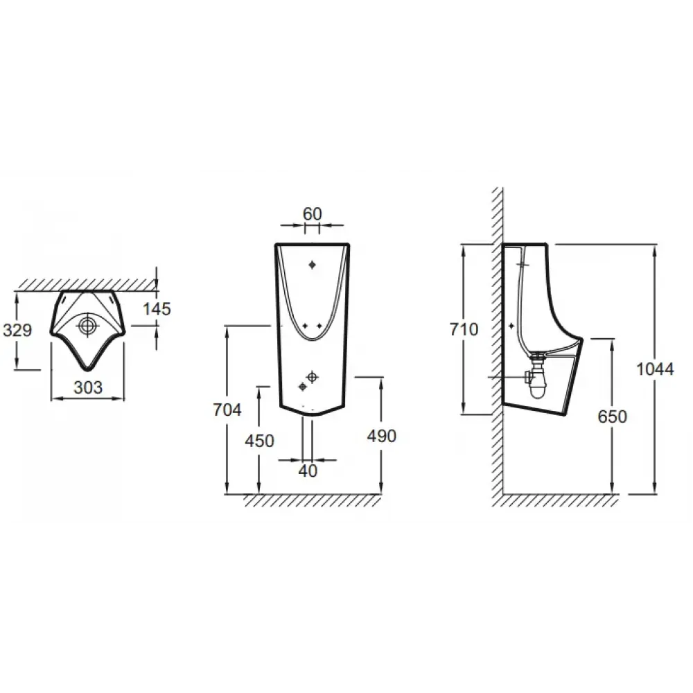 Писсуар (33 x 71 х 30 см), со встроенной сливной трубой и подводкой.