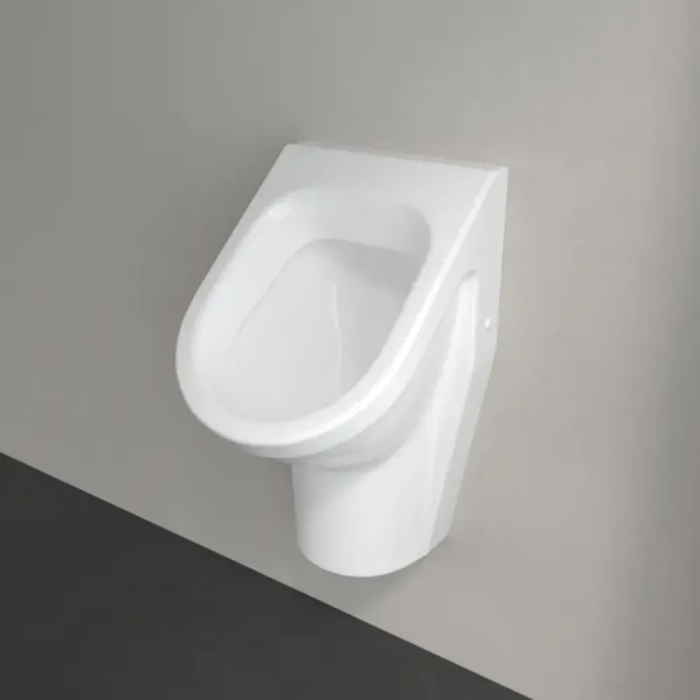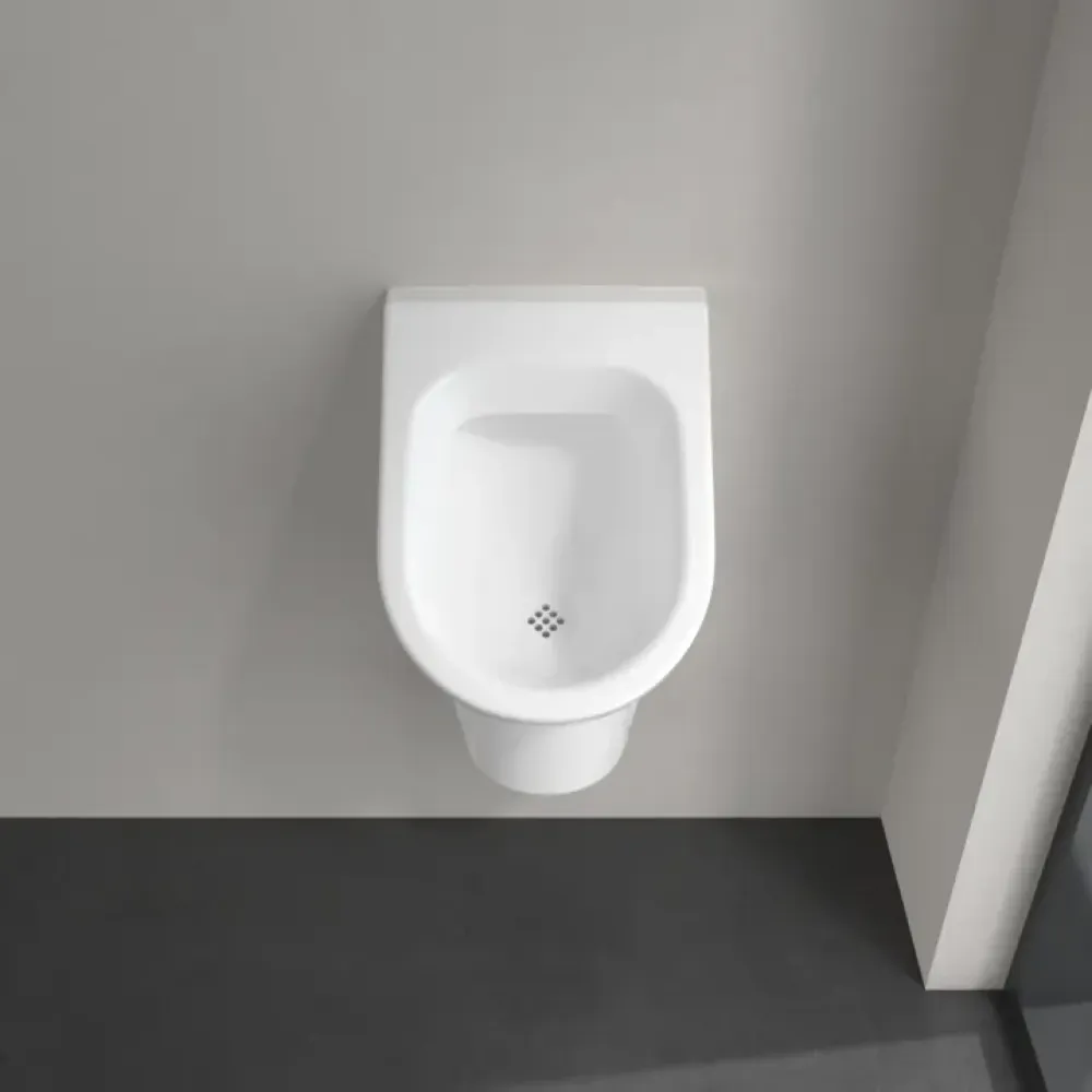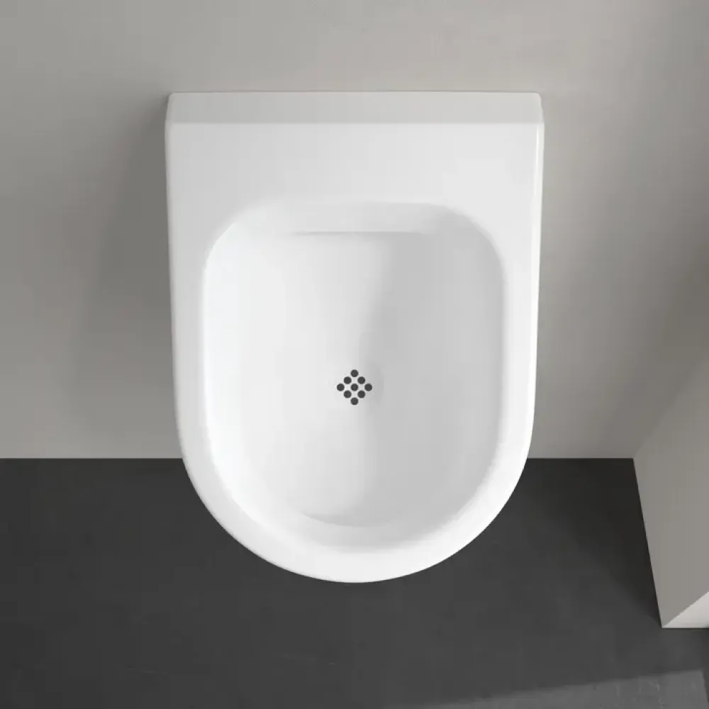 За счет специально спроектированного наклона задней стенки брызги жидкости в писсуаре Villeroy & Boch стекают вниз для максимальной гигиеничности общественного туалета или домашней ванной. Писсуар с защитой от брызг легко чистить. Специальная конструкция разбивает струю мочи и направляет ее прямо в сточное отверстие.
