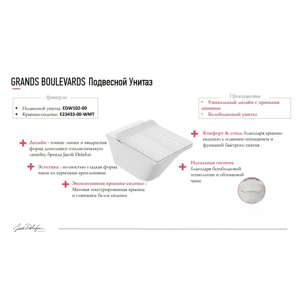 Технические характеристики Сиденье для унитаза Grands Boulevards матовая, термодюр, с микролифтом, быстросъемное E23433-00-WMT Jacob Delafon