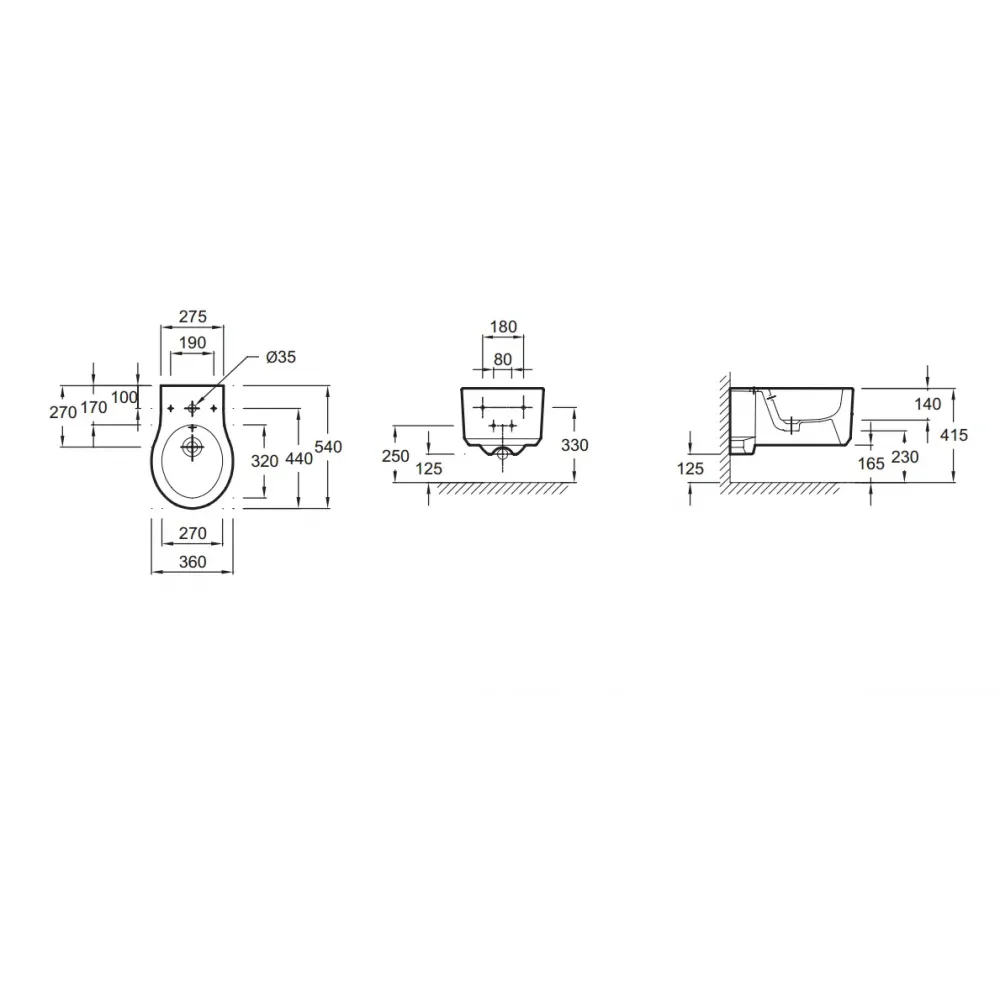 Технические характеристики Биде Formilia Viragio 36х54 см, подвесное, крышка в комплекте E4792-00 Jacob Delafon