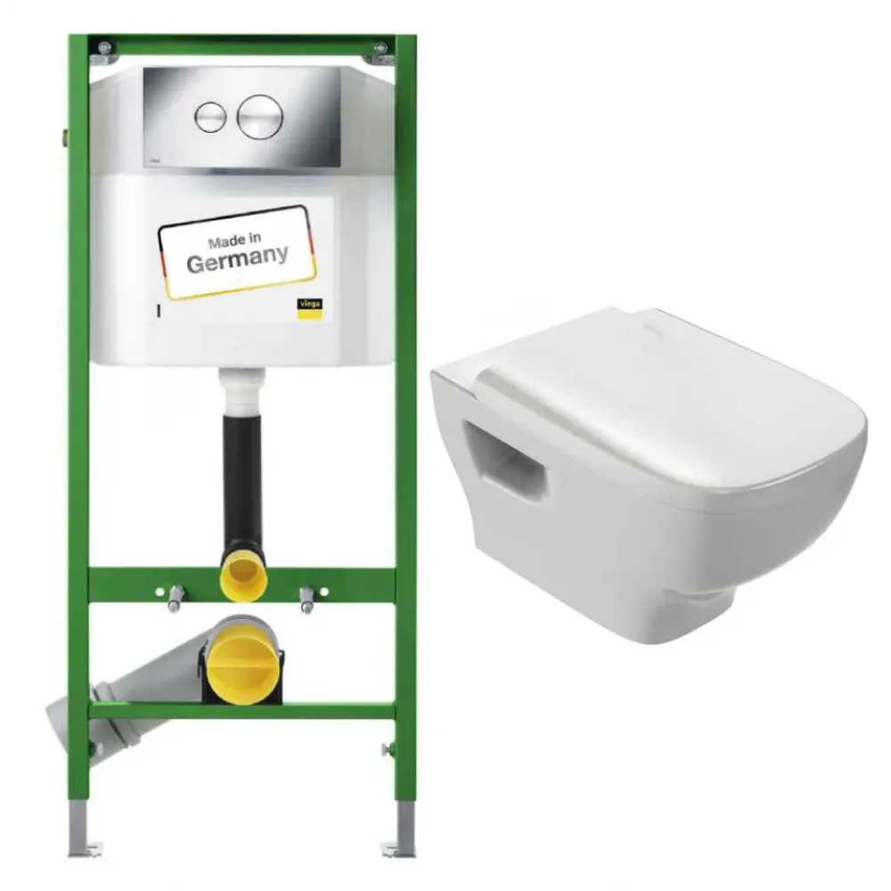 Комплект с инсталляцией Struktura горизонтальный выпуск, безободковый 713386+EDE102-00+E4270-00 Jacob Delafon