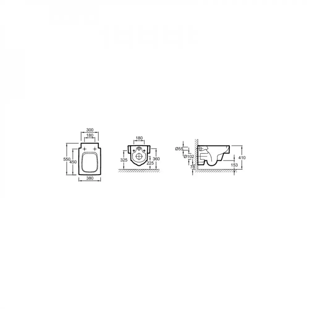 унитаз, устанавливаемый вплотную к стене, скрытая система крепежа для полноценной видимости и доступности