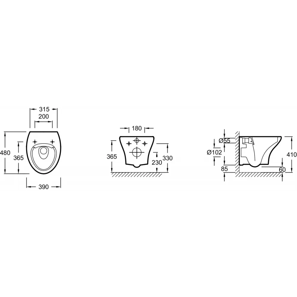Технические характеристики Подвесной унитаз Nouvelle Vague 39х48 см, безободковый, без сиденья EDK102-00 Jacob Delafon