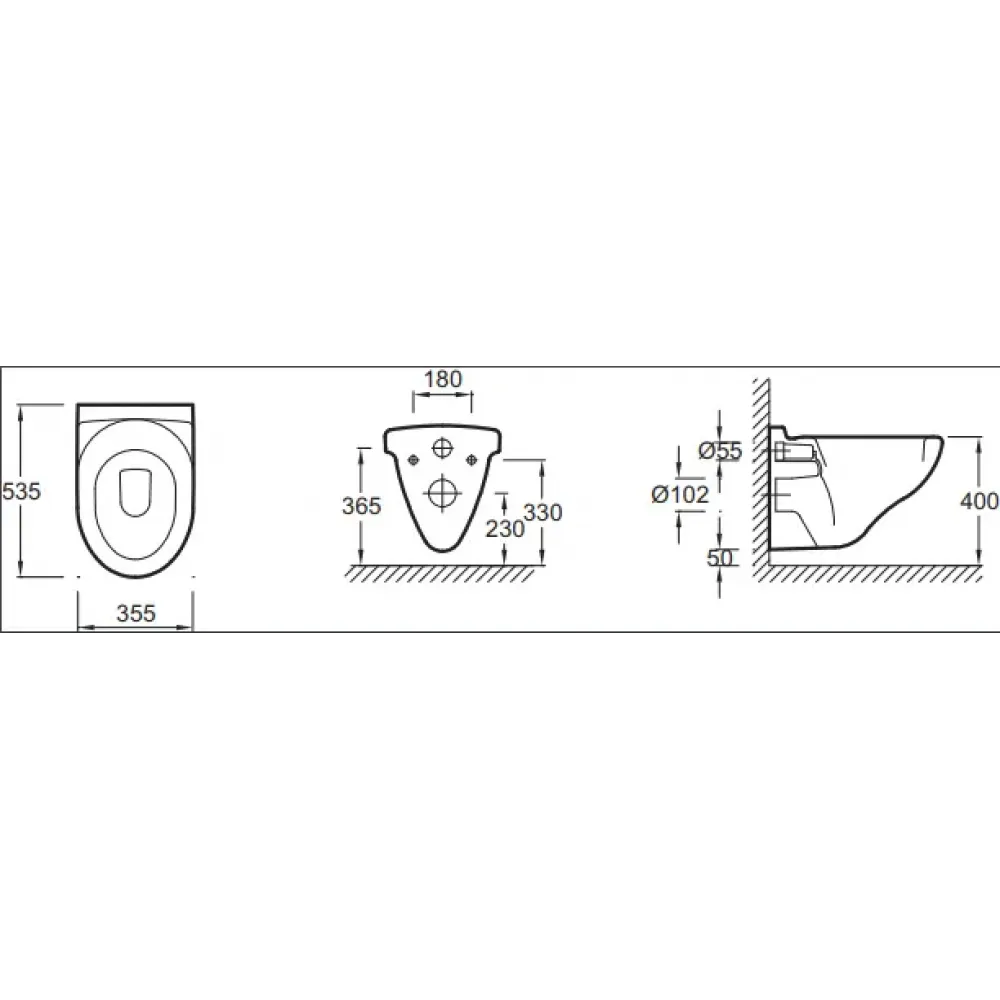 Технические характеристики Подвесной унитаз Odeon 35,5х53,5 см, без сиденья E1755-00 Jacob Delafon