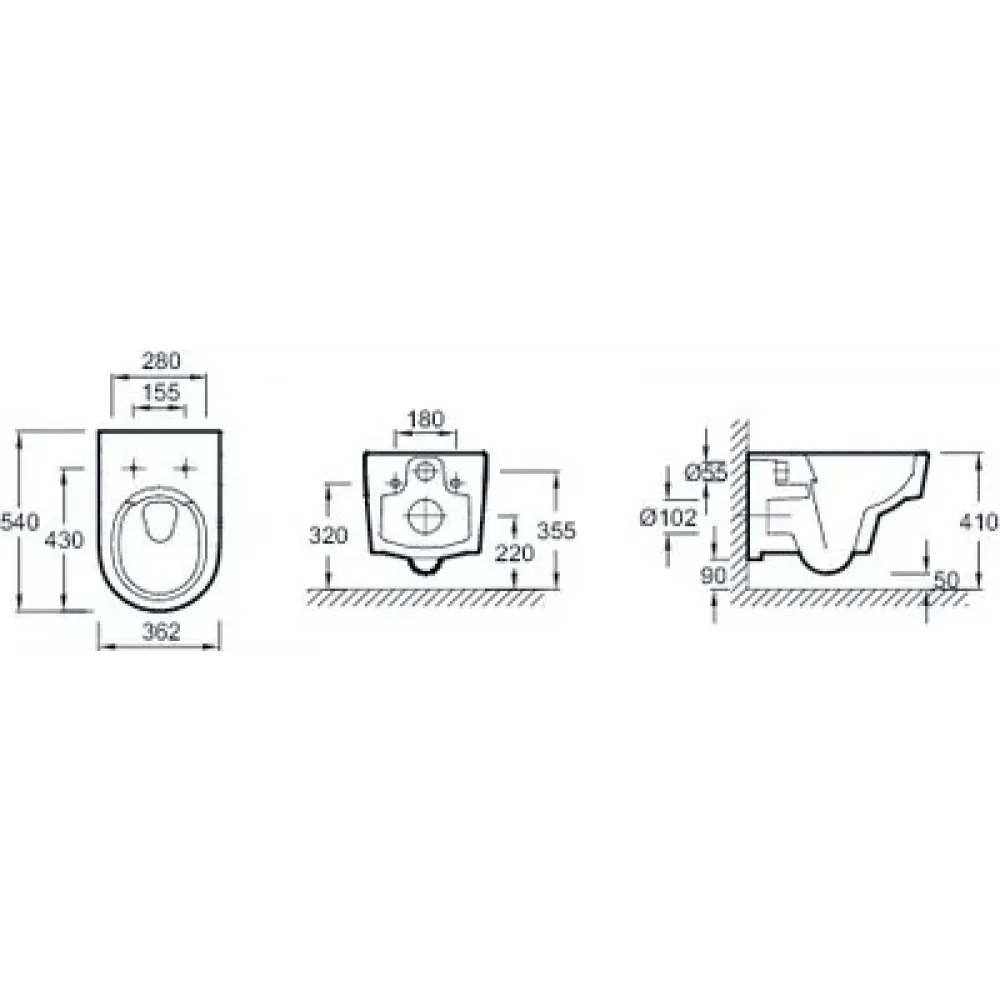Технические характеристики Подвесной унитаз Odeon Rive Gauche 36,2х54 см, безободковый, без сиденья EDR102-00 Jacob Delafon
