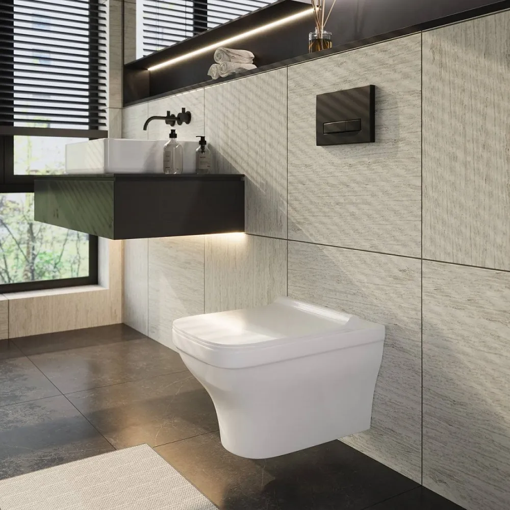 | Дополнительные функции | Безободковая система смыва, антибактериальное покрытие, экономия воды, скрытый крепеж, тонкая крышка |