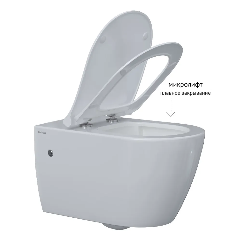 | Дополнительные функции | Безободковая система смыва, антибактериальное покрытие, экономия воды, скрытый крепеж, тонкая крышка |