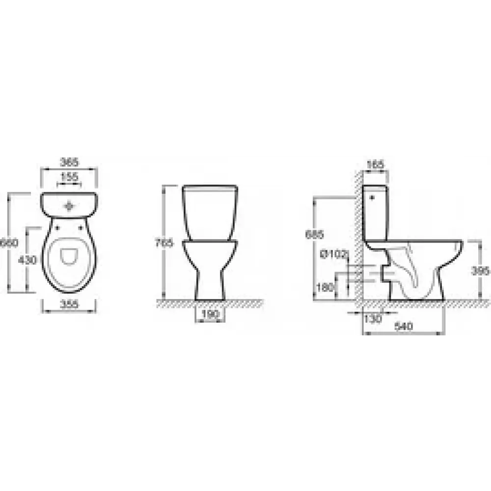 Унитаз-компакт с горизонтальным выпуском 66 х 35,5 см.