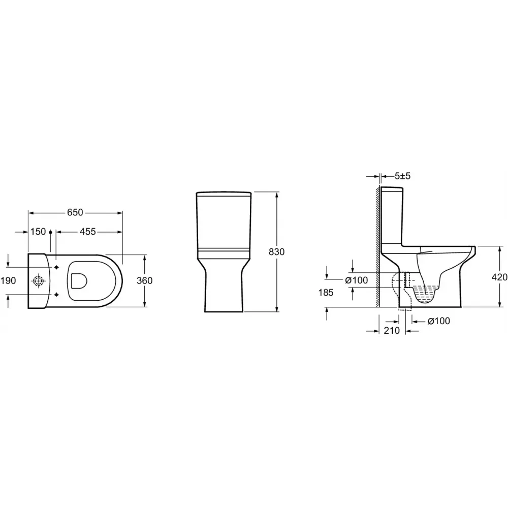 Технические характеристики Унитаз-компакт Elite 36х65 см, тонкое, с микролифтом, быстросъемное, универсальный выпуск, нижняя подводка, безободковый, с сиденьем E20997-00 Jacob Delafon